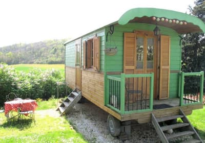 Un séjour dans une roulotte colorée, idéal pour retrouver calme et sérénité à moins d’une heure de Toulouse.