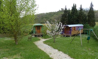 Entre mer et montagne, le Pays Lauragais abrite un petit coin de paradis sur un beau terrain verdoyant. À Montmaur, Grégory et sa famille vous proposent de ralentir le rythme le temps d’une nuit (ou plus !) et de goûter à la douceur de vivre du Languedoc-Roussillon. Le décor de ce séjour ? Deux roulottes colorées à l’esprit bohème, décorées avec des objets chinés. Les Roulottes du Lauragais peuvent chacune accueillir jusqu’à 4 personnes : un bon plan idéal pour une aventure au vert en famille ou à deux sans faire une croix sur le confort. Les roulottes en bois sont équipées de lits ou de lits-banquettes, d’un petit coin cuisine, de chauffages, d’une salle de bain avec WC et douche ainsi que d’un salon de jardin en extérieur. Elles sont d’ailleurs classées Gîtes de France et Clé Vacances, dans la catégorie "insolite". Dans le jardin, vous trouverez une piscine traitée sans chlore pour vous rafraîchir après une belle journée passée au bord du Canal du Midi, à Castelnaudary, Toulouse ou encore Carcassonne. Le goût du calme et de la sérénité pourra être complété par la dégustation d’un bon cassoulet maison préparé par votre hôte Grégory. Fier de sa région et sensible au développement durable, il pourra facilement vous indiquer les bons spots pour profiter de votre séjour dans le sud comme il se doit !