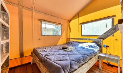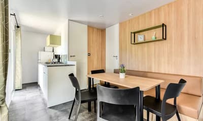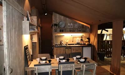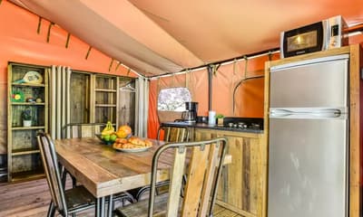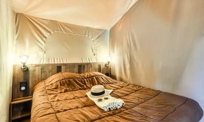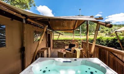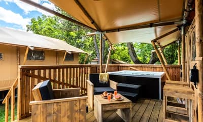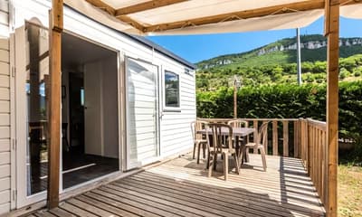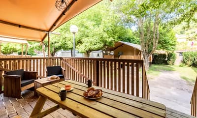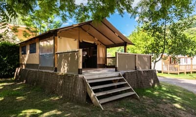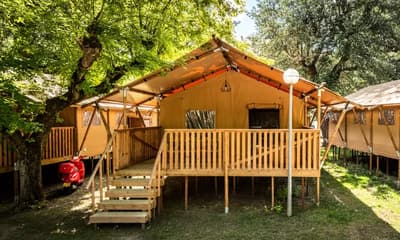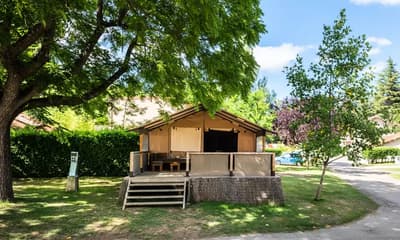 A vous la vie au vert ! Ici vous êtes au cœur du Parc naturel régional des Grands Causses. Autour de vous, des villages de caractère qui se fondent dans les paysages minéraux, sans rien dénaturer. A commencer par La Couvertoirade, village templier du Larzac, classé parmi les « plus beaux de France ». Mais aussi La Roque-Sainte-Marguerite, Saint-Véran ou Cantobre dans les gorges de la Dourbie. Quant à Montredon, il faut le découvrir à l'occasion des marchés nocturnes d’été. Bref, vous êtes loin de l’agitation urbaine et de la vie de bureau ! Ça se sent et ça se voit dès que vous posez bagages et sacs à dos près de votre tente, lodge ou mobil home. Arbres, buissons, sous-bois délimitent les espaces entre les habitations de chacun. Des allées, bien dessinées, permettent de vite trouver vos repères dans le camping. Vous rejoignez ainsi facilement la piscine XXL ou le solarium. A vous le farniente, la détente, le « no stress ». Même scénario sur votre terrasse ombragée : le bon spot pour chiller, faire la sieste ou une pause-café. Enfin, à ne pas manquer à l’heure de l’apéro : l’AOP Côtes de Millau à déguster au bar, pourvu d’une excellente cave à vins !