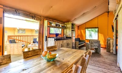 Camping dans un parc naturel régional, avec tentes, lodges et mobil homes, une piscine XXL, une pléiade d’activités pour les petits et les grands.