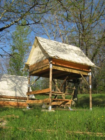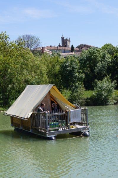 Cap au Sud-Ouest ! Ce camping est posé au bord d’un petit lac. Le village de Lamontjoie est tout proche, une bastide médiévale comme il y en a pas mal dans la région. On est plus précisément dans le Pays d’Albret, marqué par les chevauchées d’Henri IV. Aujourd’hui les démarcations ont bien changé. La commune se trouve dans le Lot-et-Garonne près de la frontière avec le Gers. Une chose est sûre, on mange hyper bien dans ce secteur qui produit beaucoup de fruits et légumes, du canard et de l’Armagnac bien sûr.Le Camping Sites & Paysages Saint Louis est parfaitement inséré dans ce paysage bucolique. Il a adopté une gestion durable de son environnement, il est labellisé Clef Verte, mais aussi classé comme refuge LPO, pour la protection des oiseaux. En plus des emplacements nus on y trouve des cabanes originales pour moitié construites en bois et en toile. Une piscine naturelle a aussi été creusée, la première dans le département. Le site est bien connu des pêcheurs, en particulier des carpistes qui viennent parfois de loin pour dénicher un beau spécimen. Mais il y a aussi des poissons plus petits, que les enfants adorent taquiner au bouchon. Sans parler des écrevisses du bassin. Le kids club laissera du temps aux parents pour se reposer, pour faire une sieste ou pour se réserver une séance de Taï chi ou de réflexologie. Il y a d’ailleurs un super centre de relaxation pas loin, le Zome Bien-être, au village de Moncaut, où l’on pratique des voyages vibratoires, si si !Au camping vous apprendrez à vous détendre, prendre le temps de voir un poisson sauter au-dessus de l’eau. D’ailleurs pour être aux premières loges, il y a même une cabane flottante et trois chalets avec pleine vue sur le lac. Tout le monde vit au grand air et profite cette de région ensoleillée, mais aussi de toutes les activités possibles sur le site. Et si vous avez besoin de vous encanailler encore plus il y a même deux parcs d’attractions dans le coin !