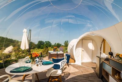 Sur le terrain d’une ferme en agriculture biologique, le Domaine Roccas vous propose un séjour bucolique dans le Lot-et-Garonne. Vous y trouverez trois types d’hébergements, des bulles transparentes, des tentes amérindiennes et des cabanes dans les arbres.