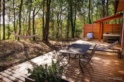 Aux portes du Quercy, il fait bon profiter du calme offert par le Domaine de la Male. Dans une cabane perchée, un chalet ou un lodge tout confort, un séjour au vert insolite s’offre à vous. Le petit plus qu’on adore : la présence d’un spa privatif sur chaque terrasse !