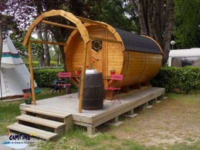 Un camping riche en activités dans une région pleine de curiosités. Que demander de plus ? Un hébergement dans un tonneau ou une roulotte, peut-être. Banco.