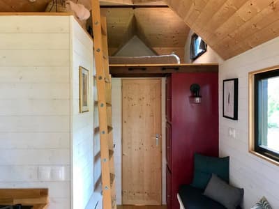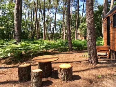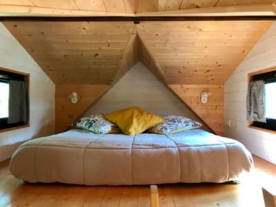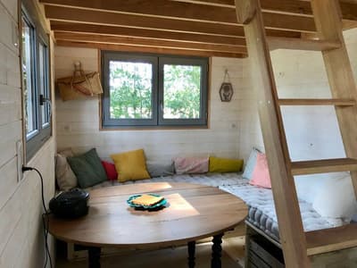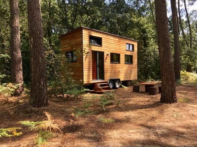 Dans un grand bois angevin, quatre tiny houses blotties sous les fougères. Tout y est fonctionnel, design et bien agencé. Pour prendre, en famille, un grand bain de nature.