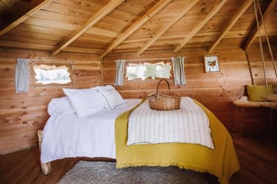 En Mayenne, les pépites touristiques sont multiples et bien cachées! Savez-vous qu'il existe un village figé dans les années 1900? Que la ville de Craon abrite un «Petit Versailles», merveille de château du XVIIIe siècle classé monument historique ? Que le musée Robert-Tatin rappelle l'œuvre du facteur Cheval? Eh bien, toutes ces curiosités en ont une autre pour voisine : La Chouette Cabane. Ou plutôt la Basse-Bergerie, un domaine familial situé à Pommerieux (à 3 km de Craon) qui a été agrémenté de quatre hébergements insolites, trois cabanes et une roulotte. Le tout disparaît sous la végétation; entre deux épanchements de saules vous apercevrez ces nids en pins et mélèze à la fois confortables et écologiques avec vue sur les étangs. C'est Gwendoline qui a donné son âme au site, avec son goût prononcé pour la nature, les animaux et la décoration. Ou l'art d'assortir un plaid bleu ciel aux teintes chaudes du bois. De garnir le mobilier de jardin de coussins dodus... La Chouette Cabane est le paradis des animaux, depuis les gentilles peluches de la ferme (chèvres, ânes...) jusqu'à ces bêtes qui peuplent le parc: chevreuils, grenouilles, lapins sauvages, libellules... Bref, enfant, vous rêviez d'une cabane ? C'est le moment de jouer les Robinsons, à deux ou en famille, et de passer... un chouette séjour.