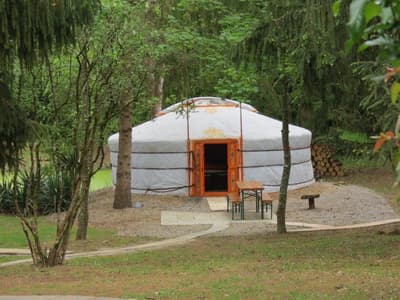 Dépaysement immédiat dans une roulotte ou une yourte mongole au cœur de la nature vendéenne.