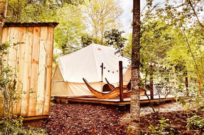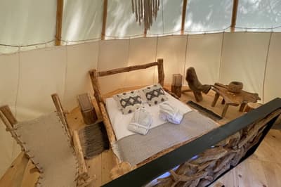 Dans la campagne bourguignonne, une vraie bulle de nature où la nuit en tipi, chariot ou cabane apporte une note de Far West.