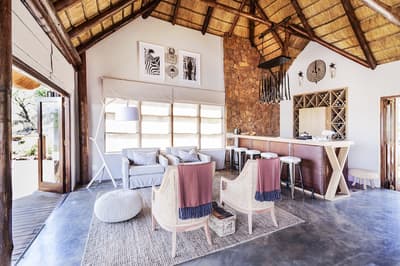 Vous voici au coeur du pays Zulu, le chemin a été court depuis l’aéroport : 15 minutes seulement pour vous donner un petit aperçu de l’immense réserve Nambiti. Vous arrivez de Joburg ? 3 h30 de route pour une étape magique. Et sous la falaise coule une rivière. Sautez du 4x4. Déjà, vous voilà accueillis comme des amis. Peut-être par Ludovic ou Sophie, son épouse, qui gèrent Esiweni Luxury Safari Lodge ? Une bâtisse principale coiffée de chaume. La déco, à la fois sobre et chaleureuse, joue sur le mélange des genres. Du bois et de la pierre, des canapés que l’on devine confortables. Dans un coin, le bar et ses bouteilles soigneusement rangées. D’ailleurs, ici tout est ordonné. On vous mène à votre suite ? Il n’y en a que 5, toutes indépendantes, vous ne serez pas dérangé ! Hautes de plafond, elles ont l’art de faire chic avec simplicité. Faites coulisser les larges fenêtres : sur la terrasse, baignoire ou douche d’extérieur, des transats et cette vue ! On retient son souffle pour tenter d’apercevoir… Mais oui, c’est bien un couple de zèbres en contrebas. On vous explique : 2 safaris par jour pour débusquer les Big Five. Le reste du temps, piscine à débordement, massages, apéritif dans le boma, cette enceinte typiquement locale, avant de dîner, sous la voûte étoilée.