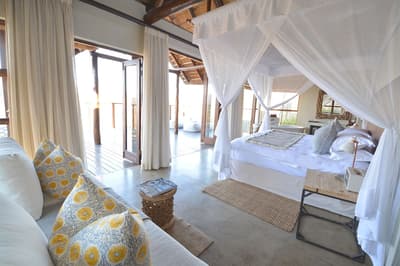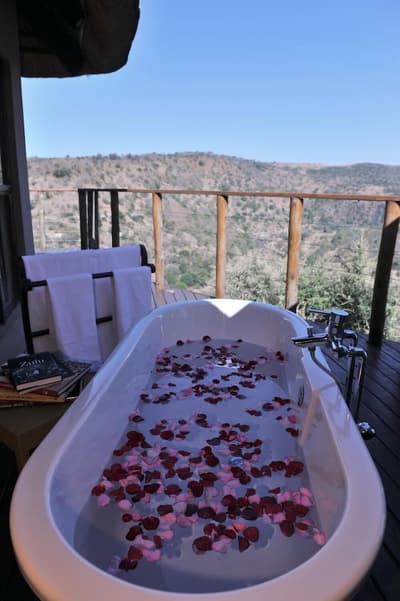 Superbe ! Agréable et très confortable, elle baigne dans une atmosphère légère et relaxante. D’une dimension généreuse, la terrasse ou le balcon est aménagé de belles chaises et profite d’une vue époustouflante sur la réserve de Nambiti. Elle accommode un grand lit et dispose d’un coin salon complètement meublé. Salle de bain ouverte avec baignoire.