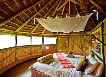 C’est l'idéal pour les familles ! Installée parmi la végétation luxuriante, l'atmosphère est relaxante et sereine. Authentique et proche de la nature, elle procure une évasion du quotidien. Elle accommode un grand lit et dispose de 2 lits simples. Salle de bain chic.