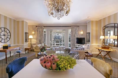 Inattendu, en tout cas unique en son genre. C’est ce que vous penserez peut-être devant la façade du Cape Grace Hotel : des briques soulignées de beige, un quai privatisé sur le front de mer Victoria & Alfred – excusez du peu ! - et en levant la tête, Table Mountain. Abandonnez votre véhicule au voiturier pour entrer dans ce hall à l’élégance ampoulée, avec ses lustres tarabiscotés et ses divans crissant de cuir. Back to the past, semble murmurer la fresque murale ! Pas de comptoir de réception, mais des bureaux anciens pour plus de discrétion. Du beau linge, des moquettes moelleuses pour une décoration mâtinée de distinction. Les salles de bain ? En marbre forcément, et avec douche et baignoire séparée. Les alentours regorgent d’adresses où dîner, mais vous passerez bien une soirée ici ? La diversité sud-africaine se retrouve dans votre assiette. Clairement, le Cape Grace Hotel est un appel aux épicuriens. Point focus ? La bibliothèque. Vous y feuilleterez un livre, une revue d’art, en attendant l’afternoon tea ou votre porto du soir : ici, c’est une véritable tradition. Ou basculez… au Bascule bar : tout amateur du coin connaît sa collection, unique, de plus de 500 whiskys. Le soir, ce lieu iconique fait tomber la veste et devient une des adresses cotées du Cap !