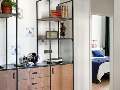Dans un style de décoration contemporaine, il comporte un beau parquet, un mobilier confortable et se complète par des plantes intérieures. La chambre est dotée d’un lit king-size extra-long et vous pourrez vous divertir devant la télévision connectée de 43 pouces. La salle de bains séparée est équipée d’une douche à effet pluie à l’italienne, de toilettes autoportantes et d'un lavabo unique sur des pieds en acier inoxydable tournés à la main par Gregor Jenkin, avec un sol en carreaux de penny partout. Le tout dans une atmosphère relaxante !