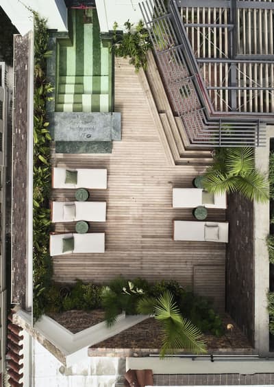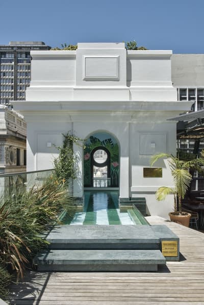 D’un coup d’œil, vous savez où vous mettez les pieds : il y a du prestige dans les deux demeures réunies en cette adresse labellisée Design Hotels™. De l’audace aussi. Un bâtiment néo-édouardien, l’autre Art déco et des intérieurs signés par l’architecte Tristan du Plessis. Poussez ces portes en laiton, baissez le nez : sous vos pieds, près de 2 000 carreaux de céramique dessinent Cape Town. L’acier répond au bois, le béton au velours, les bleus profonds au vert végétal. Des pièces de mobilier de créateurs locaux : c’est éclectique et ça claque ! Comme pour tempérer, transcender même cette urbanité affirmée, de la végétation, beaucoup de végétation jusque dans les 32 chambres. Mais on ne vous demandera pas d’arroser ! Bien sûr il y a l’ascenseur. Mais grimpez donc l’escalier de marbre jusqu’au 6e étage : une bonne excuse pour goûter aux plats copieux de ce rooftop façon atelier d’artiste à l’ambiance indus mâtinée Art Déco et aux superbes vues sur la ville. Il fallait oser, Georges l’a fait : la piscine est juste là, à côté, bassin aux parois de verre et de vert pour faire trempette en fin de journée. Et pour siroter un des cocktails originaux, attendez la fin de soirée lorsque que l’ambiance palpite, jeune et décontractée.