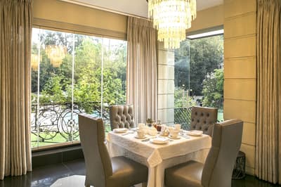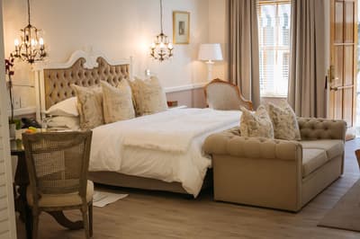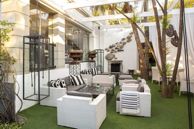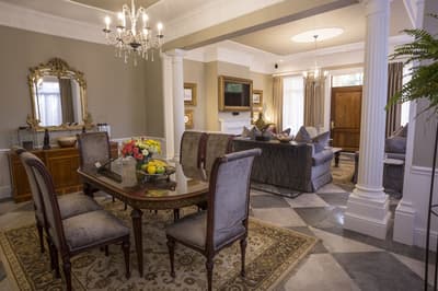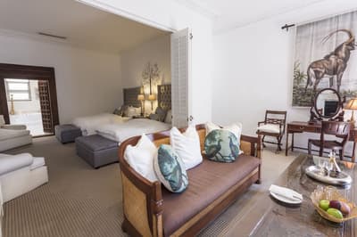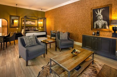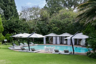 Imaginez que la demeure où vous vous rendez a longtemps été la propriété privée d’une riche famille. Elle y élevait, outre ses deux enfants, des chiens, des chevaux, des oies et même… une vache ! il faut dire que les 4 hectares de terrain pouvaient se prêter à toutes les fantaisies. Adieu oies, vaches, chevaux et un hectare en moins : mais l’adresse a gardé du chien ! De ces bâtisses érigées au XIXe siècle, persiste une atmosphère résolument romantique avec ses bougainvilliers, ses bouquets d’arbustes touffus et ses altiers palmiers ; prenez le temps de musarder dans ces jardins amoureusement entretenus, contemplez la piscine et furetez dans ces recoins secrets. Parquet brillant, grande cheminée et tapis persans : le lobby sait transmettre sa chaleur. Les 61 chambres taquinent votre curiosité, avec leur déco très variée : chinois ou sud-africain, cosy british ou moderne zen, choisissez votre style. Vous venez en famille ? Demandez la villa sous la canopée ; si les meubles y sont joliment patinés, c’est surtout l’environnement qui va vous subjuguer. Voyage entre amis, à vous la villa Moji ; avec son propre accès sécurisé, son jardin particulier et sa piscine privée, le séjour aura un parfum singulier. Même si vous décidez de prendre vos repas en ville, jetez un œil au Manor House Bistro et à la salle à manger privée : la déco y est pour le moins aussi inventive que spectaculaire !