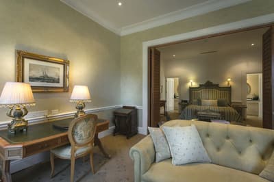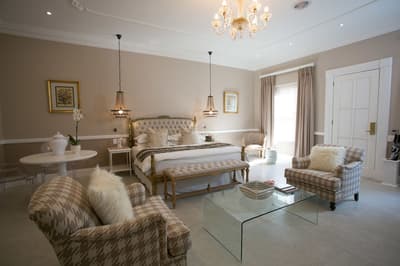 Dans une décoration luxueuse et contemporaine, elle comporte une belle moquette au sol, un mobilier raffiné et se complète par des accessoires chics. Certaines de ces suites disposent d'un vestiaire pour les invités, sauf une avec un salon séparé, et toutes sont équipées de doubles lavabos, de bidets, de douches séparées et de baignoires à jets, de chauffe-serviettes, ainsi que d'un chauffage par le sol dans les salles de bains et de cheminées en état de marche dans toutes les chambres. Le tout dans une atmosphère conviviale !
