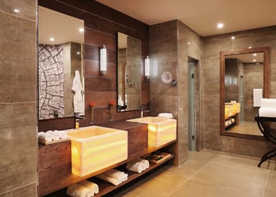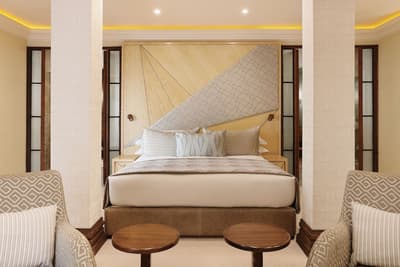 La magnifique suite Nelson Mandela Platinum comprend une belle terrasse d’où vous pourrez vous détendre, profiter du soleil tout en contemplant la vue imprenable sur les jardins et la terrasse de la piscine. À noter que la suite est accessible par un ascenseur vitré.