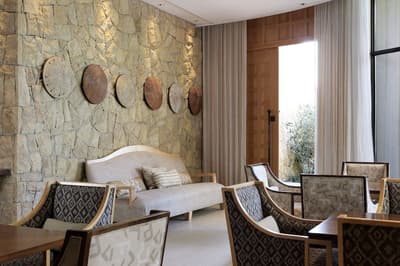 Décoré dans un style africain contemporain, le décor intègre des textures naturelles telles que des revêtements en pierre et des bois clairs et foncés; sculptures, peintures et autres pièces célèbres de la collection d'art saxon bordent les murs et les alcôves. La chambre est dotée d’un lit king-size habillé des meilleurs draps du monde et la salle de bains séparée est équipée d'une baignoire, d'une douche à l'italienne et d'un hammam. Le tout dans une atmosphère conviviale !