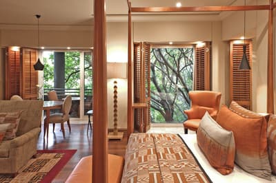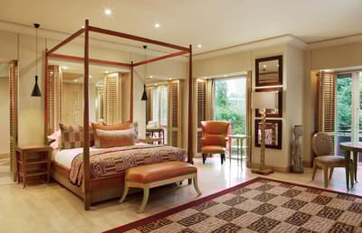 Décoré dans un style africain contemporain, le décor intègre des textures naturelles telles que des revêtements en pierre et des bois clairs et foncés; sculptures, peintures et autres pièces célèbres de la collection d'art saxon bordent les murs et les alcôves. La chambre est dotée d’un lit à baldaquin king-size habillé des meilleurs draps du monde et la salle de bains séparée luxueusement aménagée dispose d'une baignoire autoportante, d'une douche à l'italienne et de nombreuses serviettes blanches fraîches. Le tout dans une atmosphère conviviale !