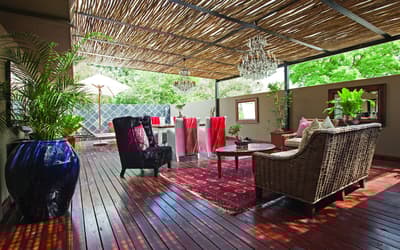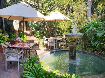 Vingt minutes vous suffiront pour relier l’aéroport au quartier de Houghton et à The Residence Boutique Hotel. A une époque, vous auriez même pu y croiser un certain Nelson Mandela ! Bien à l’abri derrière ces murs, enclavées dans une luxuriante verdure, trois villas acquises pour ne constituer qu’un seul hôtel : The Residence Boutique Hotel aime prendre ses aises et réserver quelques surprises. Vous arrivez un soir d’hiver, un feu crépite dans la cheminée de l’entrée. Furetez, d’emblée, dans le boat lounge : chesterfield camel, bois verni, coussins dépareillés, objets de marine détournés et belles maquettes de voiliers ; c’est gai et chaleureux à la fois. Et ça donne envie d’entrer dans la salle à manger adjacente : miroirs dorés, nappes blanches et sièges confortables, de l’élégance mais avec une certaine simplicité. Meubles patinés, rideaux opulents, lustres en cristal, tapis persans : c’est étonnamment sophistiqué et pourtant, pas particulièrement clinquant. Des chambres, des suites, un penthouse et même une villa à privatiser, chacune a son style. Après une journée en ville, pensez au délice de plonger dans la piscine. Quelques notes de musique, une ambiance tamisée, le piano-bar sera parfait pour un drink de fin de soirée.