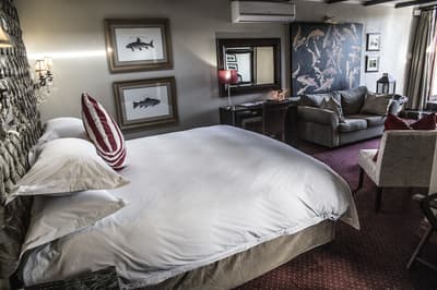 Élégante et accueillante, elle comprend une décoration riche et opulente avec une belle moquette au sol, des fauteuils confortables et une lumière douce qui se reflète sur les lustres anciens en cristal français. La chambre est dotée d’un lit king size extra-long et vous pourrez vous divertir devant la grande télévision à écran plat. À noter que la suite 15, uniquement, comprend une douche extérieure et un sauna et la suite 14, uniquement, comporte une cheminée. Le tout dans une ambiance cosy !