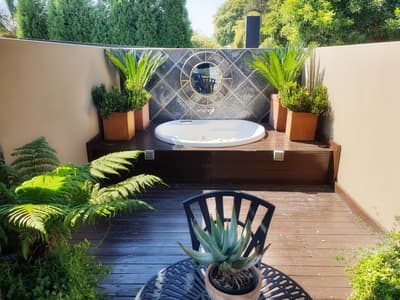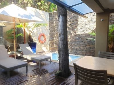 Confortable et intime, elle profite d’un salon séparé qui donne sur un patio spacieux doté d'un jacuzzi privé, de chaises longues et d'une salle à manger; l'endroit idéal pour s'asseoir et profiter des vues incroyables sur les jardins entretenus et la piscine, tout en dégustant un bon verre de vin. Après vos activites de la journée, vous pourrez profiter des meilleurs services et équipements que cette chambre a à offrir.