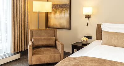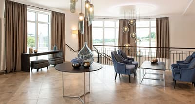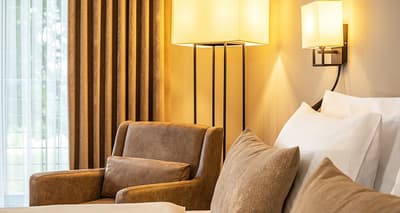 Ras-le-bol de la ville, vous rêvez de vous poser dans un petit nid douillet au vert ? Alors Victor's Residenz-Hotel Teistungenburg pourrait bien faire l’affaire. Isolé dans une propriété rurale de la région de l’Eichsfeld, cet hôtel quatre étoiles est entouré de bois, de collines et de prairies. Les différentes chambres et suites (avec balcon en option) donnent bien évidemment sur ce paysage très vert : à vous la douce brise et le chant des oiseaux au réveil ! N’allez pas croire que le style des lieux est campagnard pour autant, ici on n'est clairement pas sur un décor façon charpente en bois et grosses pierres apparentes. Au contraire, le design se veut moderne et dans l’air du temps. Voyez plutôt : les chambres arborent un harmonieux mélange de blanc, de gris et de beige, avec de douces lumières tamisées et un joli mobilier en bois contemporain. C’est épuré, lumineux. Il en va de même pour la salle de sport, les bassins aquatiques et les saunas. Eh oui, ici on peut aussi bien glisser sur un toboggan, buller dans le jacuzzi, se prélasser dans l’un des rares saunas de la région que défier ses potes pour une partie de badminton. On apprécie aussi le choix proposé pour le petit déjeuner – c’est encore mieux l’été quand il fait beau et qu’on peut s’installer sur la terrasse qui donne sur le paysage. Tout comme on apprécie l’engagement de l’hôtel en faveur du tourisme durable : la preuve, il a le label Green Sign.