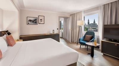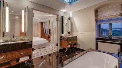 Le Bilderberg Bellevue Hotel Dresden porte bien son nom : ici, on a une vue fameuse sur les flots du fleuve Elbe et sur les élégants monuments baroques de Dresde, depuis le jardin comme depuis nombre de chambres et suites. Romantique à souhait, comme vision ! Vous pourriez bien vous perdre dans le dédale de couloirs du bâtiment ancien, qui abrite 340 logements pensés dans un esprit chic et cosy. Appréciez leur mobilier moderne, leurs lits confortables, leurs sofas moelleux et leurs tonalités oscillant entre rouge sombre, gris clair et marron chaud. À noter : beaucoup de chambres ont une baignoire où il fait bon buller après une bonne journée de marche – plein de sites clés sont accessibles en quelques minutes à pied, un emplacement royal pour explorer l’histoire locale ! Le nec le plus ultra reste les suites supérieures, qui donnent à la fois sur le jardin, la rivière et la ville. Et pour le petit déj', y’a du choix : on est plutôt sur un brunch continental, avec une belle part de produits frais. Si vous venez l’été, on vous suggère d’aller déguster tout ça sur la terrasse ! Ensuite, allez donc flâner le long des allées dans le jardin pour en guise de promenade digestive. Sauf si vous préférez faire un petit plouf dans la piscine, squatter l’espace spa ou bien dépenser vos calories du côté de la salle de fitness. Oh et on vous a dit que le Bilderberg Bellevue Hotel Dresden a le label Green Hotel, preuve de son engagement pour le tourisme durable et pour un traitement équitable de ses employés ?