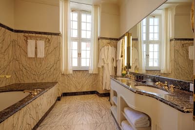 Amateurs d’hôtels haut de gamme avec un fort cachet historique, le Gewandhaus Dresden Autograph Collection pourrait bien vous taper dans l’œil. Rendez-vous dans la vieille ville de Dresde pour découvrir la belle bâtisse historique à la façade jaune et blanc, avec ses grandes fenêtres à carreaux, qui abrite cet hôtel bien connu – l’extérieur pose déjà le décor. Entrez donc et découvrez votre chambre avec ses tons lumineux entre blanc et vert de jade, ses élégantes moulures au plafond et son mobilier design élaboré par des artisans de la région. Classe. La salle de bain en jette aussi avec son marbre italien zébré. Le top, c’est la suite de 45 m² avec la baignoire spa pour se détendre la nouille à grands coups de jet massant à toute heure de la journée. C’est encore plus sympa le soir, après avoir découvert les monuments historiques qu’on trouve en pagaille à proximité. Vous pouvez aussi aller barboter dans la piscine intérieure ou bien vous offrir une bonne suée sur les machines fitness de la salle de sport. Un petit creux ? Direction le resto de l’hôtel pour se régaler d’un petit déjeuner fameux avec des produits frais et des spécialités régionales, ou bien à l’heure du dîner pour s’enquiller un bon pavé de steak maturé (c’est la spécialité des lieux). Notez que l’hôtel a aussi un coffee house avec des desserts maison préparés par les pâtissiers sur place. Labelisé Green Sign, Gewandhaus Dresden Autograph Collection s’engage en plus pour la préservation des ressources énergétiques.