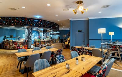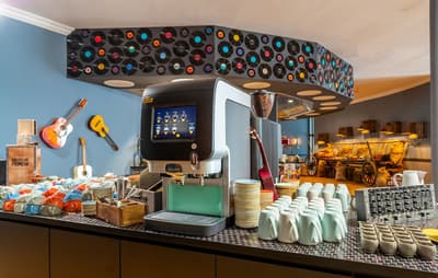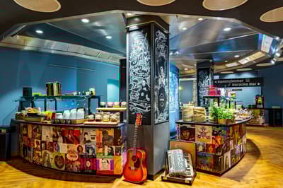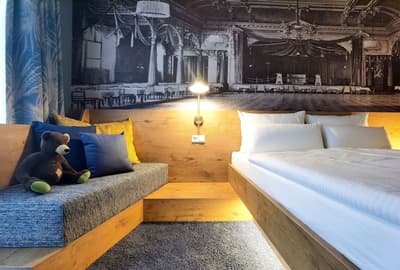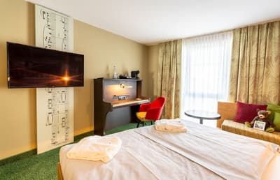 En voilà un qui sort complètement du lot. Pensé sur le thème de la musique, le MightyTwice Hotel Dresden se tient en place et lieu d’un ancien club populaire dédié à la musique, à la danse et au spectacle, auquel il rend un hommage très réussi. Rendez-vous dans un quartier un peu à l’écart du centre-ville de Dresde pour découvrir l’ambiance chatoyante de l'endroit : les espaces communs comprennent des touches de couleur explosives, une déco musicale bien pensée (téma ce chouette mur de vinyles collés les aux autres ou ces lampes façon partition de piano !) ainsi que des éléments inattendus (genre le gros nounours en peluche dans le couloir). C’est fun, chaleureux et original ! L’univers de la musique se glisse également dans les chambres, évidemment. Elles font entre 17 m² et 35 m², et vous pouvez y découvrir un piano devenu table, une table-vinyle, ou encore une trompette recyclée en lampe de chevet, le tout posé sur une moquette vert pomme. Attention, ce cachet à part n’est pas la seule clé du succès de l’établissement. Direction le bar karaoké pour pousser la chansonnette ou la salle de bal pour une session de danse endiablée. A moins que vous préfériez squatter le sauna pour une bonne suée ou booster votre cardio sur les machines de fitness ? Notez aussi que les équipes de l’hôtel ont dressé une liste très fournie d’endroits à voir et de sorties à faire dans la ville de Dresde. Cerise sur le gâteau : le MightyTwice Hotel Dresden détient le label Green Sign.