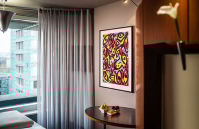 Le Penck Hotel Dresden, c'est un peu une galerie d’art. Eh oui, la décoration de cet imposant hôtel situé à Dresde et pas très loin des rives de l’Elbe est un hommage à A.R Penck, haute figure de l’art allemand d’après-guerre. Un endroit à retenir pour les amateurs d’art contemporain et de design atypique ! Ça commence dès le rez-de-chaussée tout habillé de noir, où trônent de grandes peintures de l’artiste et des sculptures étonnantes. À côté de ça, l’ambiance est résolument moderne. Asseyez-vous donc sur l’une des banquettes noir de jais et laissez votre regard se promener d’un tableau à l’autre – il y en a à foison. On retrouve le même esprit du côté des chambres et des suites, qui se coulent dans des tons noirs, gris et blanc, et comprennent des éléments étonnants, comme ces vasques rondes et profondes d’une texture façon aluminium. Que vous preniez la chambre double ou l’une des deux suites spacieuses avec vue sur la ville et sur un monument historique, vous aurez dans tous les cas droit à un très grand lit double. Et également à un petit déj' de haute volée. Attaché à la régionalité, le Penck Hotel Dresden a pris le soin de composer un buffet copieux alimenté essentiellement par des fournisseurs locaux : à vous les spécialités régionales, les pâtisseries de la boulangerie Siemank, vieille de 130 ans, et les fruits des vergers de la Saxe ! L'établissement est également attaché à l’écoresponsabilité et a mis en place moult mesures pour baisser sa consommation d’énergie.