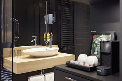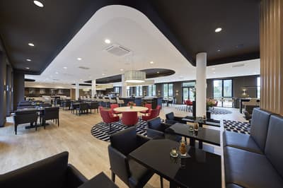 Pas fan des hôtels au cachet ancien, vous préférez les établissements modernes et meublés avec goût ? Vous allez être servi au Légère Hôtel Erfurt. Situé non loin du Centre des Congrès, dans un quartier récent à l’Ouest d’Erfurt, cet établissement à la fois moderne et design plaira aux amateurs du genre. Entrez et voyez par vous-même : les espaces du rez-de-chaussée, avec leur méli-mélo de blanc, de beige et de noir, leurs néons tendance au plafond, leurs fauteuils design et leurs moquettes à motifs symétriques, donnent le ton. On aime tout particulièrement les larges baies vitrées qui laissent entrer la lumière et permettent d’observer tranquillement les bâtiments du quartier, calé dans un fauteuil moelleux. Allongez-vous donc sur le confortable lit de votre chambre double de 18 m² à 35 m² et appréciez le mobilier aux lignes fines et épurées. Notez que vous aurez vue sur le quartier quel que soit la gamme choisie. Notez aussi que tous les hôtels du groupe Légère Hotels sont certifiés Green Sign, un label européen pensé pour l’industrie hôtelière qui implique entre autres des achats plus responsables et durables. Pas étonnant qu’on retrouve des produits régionaux au menu du copieux petit-déj' servi sous forme de buffet !