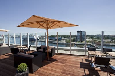 À l'image d'un vaisseau amiral, l'Atlantic Hotel Kiel domine le fjord. Les nombreuses baies vitrées, les multiples salons panoramiques, le bar en rooftop qui fait office de pont supérieur et une esthétique qui fait écho à certains derniers bateaux de croisière en vogue, font bien illusion. Un "Moin" qui signifie "Bonjour" au nord de l'Allemagne, s'inscrit en grand sur la banque d'accueil. Le hall, lumineux, apparaît sur un fond gris sur lequel ressort un mobilier contemporain de couleurs acidulées tel le vert anis et l'orange vif. Un brin vintage. Le parti pris décoratif est géométrique, tout comme dans les chambres. Ces dernières se distinguent par l'intégration d'un bois clair, évoquant la Scandinavie juste à portée de nœuds ! On aime ces tableaux de format panoramique qui viennent apporter la touche de nature. Quant au resto, le Pier 16, c'est un réel atout. Les serveurs donnent l'impression de vous connaître depuis toujours, la carte révèle des produits triés sur le volet, le menu de saison séduit et les plats régalent. De plus, l'addition est raisonnable. C'est sans doute le résultat de la politique locavore des Atlantic Hotels. Il n'y a pas un fournisseur qui ne soit pas des environs. Bravo !