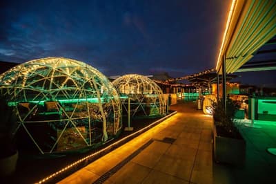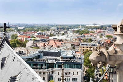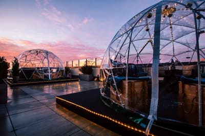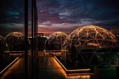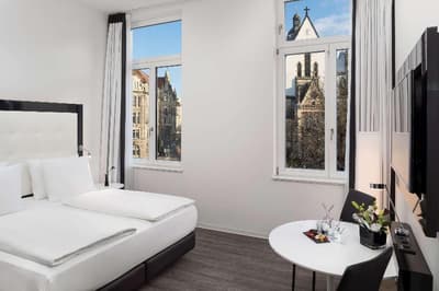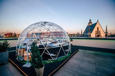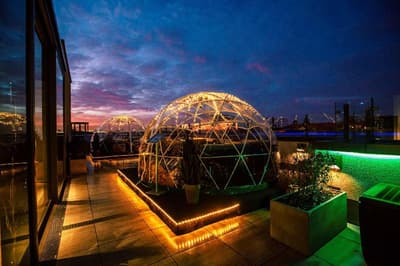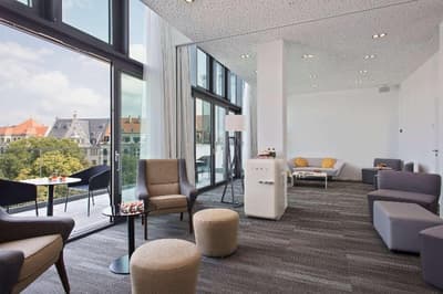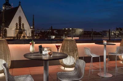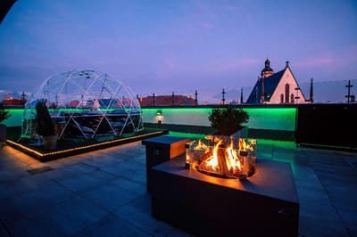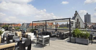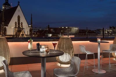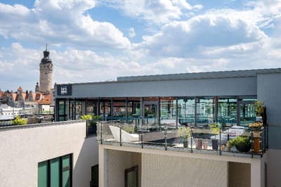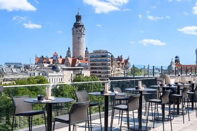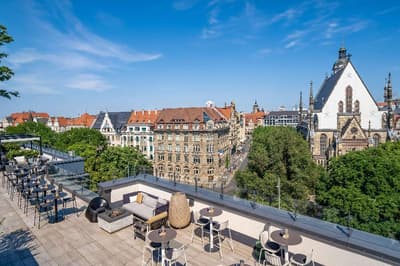 Le voilà ! L’hôtel Innside squatte deux immeubles historiques aux façades néo-baroques, dans le centre de Leipzig : la Maison Kosmos et le Palais Schlobach. Deux monuments de la ville réunis par une verrière au look contemporain qui réussit un coup de maître : la rencontre entre histoire et modernité. C’est chic, c’est smart et c’est surtout très stylé ! Mais ce qui est encore plus ouf au Mélia Innside, c’est son rooftop festif avec vue sur la ville. Mattez ce panorama sur l'église Saint-Thomas et les toits de Leipzig. C’est l’endroit idéal pour boire un verre au sunset, en écoutant les derniers skeuds des dj’s locaux. Et ça fonctionne même en hiver, sous de petits dômes igloos où chiller au chaud. Le resto-bar Syndéo est aussi une pépite, où officie un célèbre chef allemand. On y déguste une cuisine d’auteur et on y rencontre les locaux, puisque l’établissement est accessible à tous, sans passer par le lobby de l’hôtel. Vous apprécierez également les chambres, très modernes, avec de très, très belles vues panoramiques sur la ville. Enfin, ce resort urbain propose une programmation d'événements festifs et musicaux tout au long de l’année. Et, cerise sur la choucroute, il est auréolé de l’écolabel Ecostars pour ses efforts en matière d’économie d’énergie, de réduction de son empreinte carbone, ou encore de réduction du plastique à usage unique.