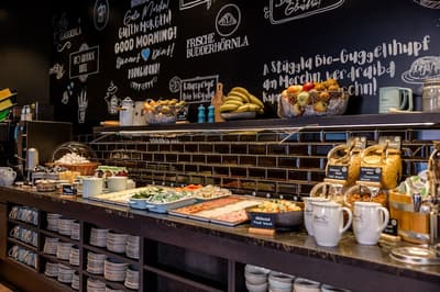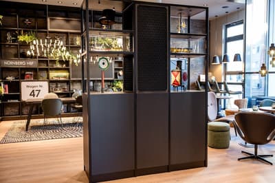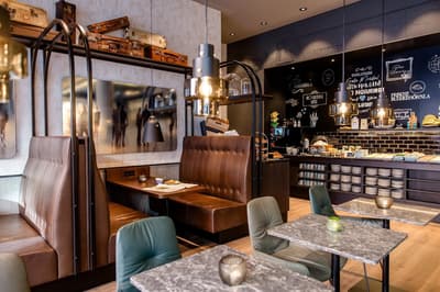 Vous aimez les décors historiques qui vous embarquent dans le passé ? Ça tombe bien, le Motel One Nürnberg-City vous plonge dans l’univers du chemin de fer avec une déco thématique bien choisie. Il faut dire qu'il est situé à quelques minutes à pied de la gare de Nuremberg, qui a d'ailleurs été la toute première ville d’Allemagne à s’équiper de lignes ferroviaires. Joli clin d’œil au quartier et à l’histoire locale, non ? Ici, on prend le petit déjeuner dans une salle cosy avec des étagères débordant de bagages d’un autre siècle, tout en admirant la vue sur le paysage urbain du centre-ville. Petit déjeuner qui plus est composé en grande partie de produits bios, issus du commerce équitable, et de spécialités régionales (le fromage, le lait, le beurre et les yaourts viennent tous des Préalpes bavaroises). On apprécie aussi le service accueillant et amical du personnel, tout comme le bar lounge où il fait bon chiller dans les fauteuils typiques du design d’Arne Jacobsen et d’Achille Castiglioni, un bon bouquin à la main. Notez qu’outre ce clin d’œil historique, ce Motel One reste dans l’esprit cosy et moderne typique de la chaîne. Les chambres ? D’une superficie de 16 m², elles sont équipées de lits queen ou king size où piquer un roupillon digne de ce nom, et arborent de belles touches de bleu qui égayent les lieux. Engagé dans un programme durable qui reprend les 17 objectifs fixés par l’ONU pour un avenir meilleur, le Motel One Nürnberg-City a également décroché le label Green Key, qui est l’un des plus anciens labels écolos pour le monde du tourisme.