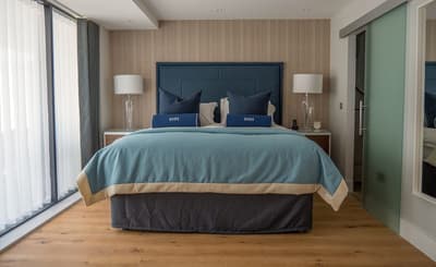 Style résolument minimaliste et moderne, elle comprend un fauteuil confortable avec une grande table pour prendre votre apéritif. La chambre est dotée d’un lit king confortable et bénéficie d’une luminosité naturelle. La salle de bains en marbre est équipée d’une douche cascade ou d’une baignoire. Le tout dans une ambiance relaxante !