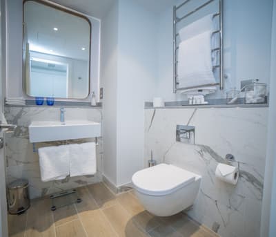 Wifi gratuit, Climatisation, Service en chambre 24h/24, Gin gratuit, Mini-bar, Machine à café Nespresso, Nécessaire à thé et café, Verrerie, Bouilloire électrique, Réveil, Draps en coton égyptien, Peignoirs, Chaussons, Bain, Articles de toilette Bramley, TV à écran plat, Sèche-cheveux, Téléphone, Coffre de sécurité.