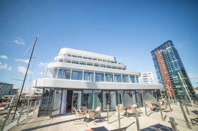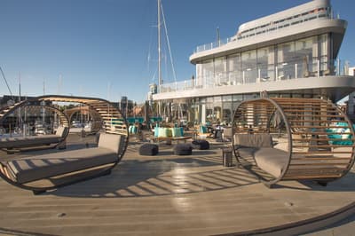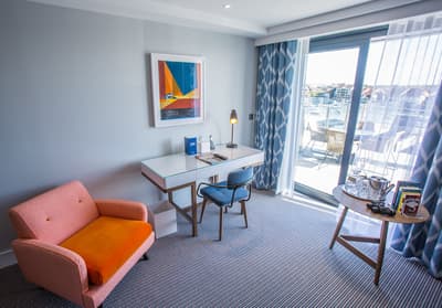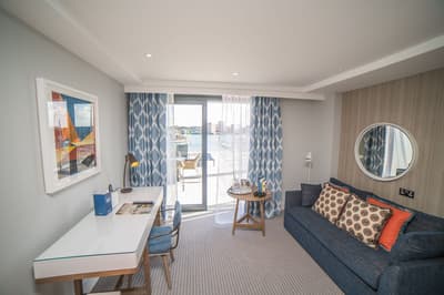 Pas besoin d’avoir le pied marin pour profiter du wonderful Harbour Southampton Hotel ! Ancré dans le port de plaisance, le bâtiment a vraiment, vraiment l’air d’être un vrai gros bateau au milieu des voiliers ! Moussaillon, accrochez-vous, car cet hôtel envoie du lourd… Avant d’aller poser ses valises dans la sublime chambre ambiance navy et bord de mer, on a déjà repéré LE spot : la terrasse au bout du quai au milieu des bateaux et de l’eau, avec des banquettes pour chiller et boire un café ou un cocktail. Mais revenons à l’intérieur : la déco est sublime, on se sent vraiment dans l’ambiance marine, comme sur un vrai bateau de luxe ! La partie la plus agréable ? Toutes ces baies vitrées qui donnent l’impression de voler au-dessus du port. On prend de la hauteur et on se régale de poissons et de crevettes géantes au resto qui arbore les drapeaux britanniques sur les murs dans un style coloré de vert et de jaune vraiment canon. On adore ces grosses boules de verre entourées de cordes qui rythment la déco de la salle ! Vous en voulez plus ? Au 6e étage, vous dominez totalement le port, la ville et l’océan. A la table du Harbar, on se régale de Fish’n’chips, de burgers, de salades et de pizzas cuites au feu de bois. Avec une autre terrasse en altitude qui donne vraiment cette impression d’être sur un pont de bateau ! On embarque direct ! Autres points positifs : l’espace spa bien-être avec la piscine et une belle carte de soins avec massages, enveloppements et autres gommages pour se détendre totalement. Et puis il y a aussi cette salle de ciné qui vous permet d’occuper les jours de pluie ! Ou encore la salle de sport toute équipée. Une adresse à retenir pour vos voyages en couple ou en famille : les kids sont les bienvenus. Et il y a de grandes chances pour qu’ils adooooorent le tea time qui leur est dédié…