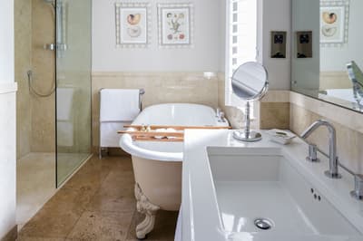 Notre idée du British dream ? Pourquoi pas l’hôtel The Bath Priory, un manoir de 1835 pourvu de super jardins à l’anglaise ! Le lierre et la glycine violette qui grimpent sur la façade de pierre, les buissons taillés au millimètre près, les parterres de fleurs qui se métamorphosent au gré des saisons — tulipes, magnolias, géraniums, perce-neige —, les bassins qui reflètent les pignons et les cheminées typiques de la bâtisse… Tout vous invite à la rêverie ! Vous déambulez dans les allées en faisant craquer les graviers. Vous marchez pieds nus sur la pelouse impeccablement entretenue. Vous poussez la grille en fer forgé qui mène à un autre jardin d’Eden, histoire d'aller méditer à l’ombre du cèdre du Liban. Et quand il pleut — oui, ça arrive en Angleterre ! — vous vous réfugiez au resto ou dans un des salons cosy, derrière les fenêtres, sans rien perdre de la sérénité que vous procure cette végétation. Et vous sirotez un thé avec un nuage de lait et des sablés, of course. Ça vous paraît cliché, tout ça ? Eh bien, c'est pas le cas ! C'est si calme ici qu’on se surprend à marcher sur la pointe des pieds pour rejoindre sa chambre ou sa suite, si justement nommée d’après une fleur — ambiance romantique au rendez-vous !