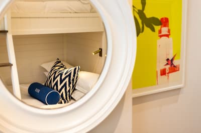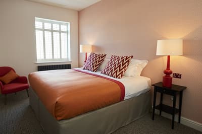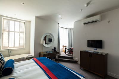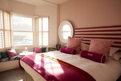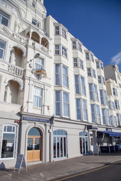 Un superbe bâtiment blanc de style Regency, qui fait l’angle d’une rue face la digue : bienvenue au Brighton Harbour Hotel & Spa ! Ici, vous avez tout à dispo pour profiter des beach vibes de cette ville emblématique du sud de l’Angleterre. L’hôtel vous prépare même des paniers pique-nique pour la plage ! Vous pouvez aussi vous régaler de fish & chips et de desserts glacés dans le resto de l’établissement. Et la moitié des chambres dévoilent une vue sur la mer. De quoi écouter le bruit des vagues et observer les gens en bas en train de bronzer, tranquille derrière vos fenêtres panoramiques... Et sinon, cet hôtel à l’apparence classique est plus funky que vous ne le croyez. La déco est top, surtout dans la salle à manger ! Fauteuils en tissu fleuri, papiers peint à motifs originaux, banquette matelassée jaune moutarde et canap’ rouge tout doux, murs bleus style cabine de bateau... Le tout illuminé d’affiches et de néons. Et ça ressort super bien sur le parquet et les poutres en bois. Pareil pour les chambres, où la déco épurée est ravivée de couleurs joyeuses bien choisies. Last but not least : le spa souterrain, ancien repaire de contrebandiers, pour un moment détente très original !