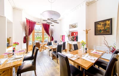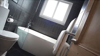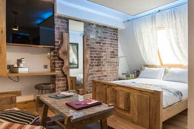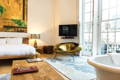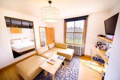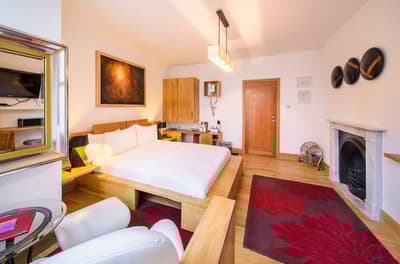 Oh le bel escalier black & white, longé de plantes en pot ! Tout de suite, l’Hotel Una annonce une grande attention portée aux détails. Et pour être honnête, on a plus l’impression de passer la porte d’une maison, voire d’un musée, que d’un hôtel… Ici, chaque chambre, nommée d’après une rivière ou un fleuve, est unique ! Mais toutes ont la même vibe arty. La déco mêle l’ancien au contemporain avec brio. Des éléments d’époque sont sublimés par des œuvres d’art moderne et des pièces d’artisanat. On adooore le bois brut et les briques apparentes, les surfaces vitrées qui mettent en valeur une sculpture, les tableaux colorés, les cheminées qui ont gardé leur charme d’antan… C’est lumineux, chaleureux, jamais too much malgré les nombreux objets. Et avec son bel espace, son canap’ en cuir comfy et ses fenêtres typiques, la chambre Eden représente parfaitement le style homemade de cet hôtel ! Mais si vous êtes adepte de tout ce qui est original, optez plutôt pour une « spa room » ou pour le logement duplex avec salle de cinéma privative… Quant au petit déjeuner, il est servi chaque matin dans l’une des deux salles à manger, comme à la maison. Mais avec le full English breakfast en plus. Autre belle surprise : le bar quirky avec sa banquette baignoire, ses murs de briques, son spot flashy et son menu de cocktails inspiré de la période de la prohibition.