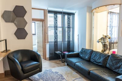 C’est l'idéal pour se couper du quotidien ! Chic et élégante, elle est raffinée. La pièce baigne dans des tons neutres pour une ambiance sereine. Elle laisse pénétrer la lumière naturelle pour un ensemble lumineux et accueillant. Le mélange de bois, de rotin et de verre ajoute une touche d’exotisme à l’ensemble. Des couleurs vives lui donnent du peps.