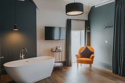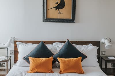 Vous dormez dans un pub à Brighton : le rêve, non ? En tout cas, le nôtre ! Et en plus, ce n’est pas n’importe quel pub puisque c’est un gastropub, d’une, et que le magazine GQ l’a sacré l’un des dix meilleurs pubs du Royaume-Uni, de deux. Bon, ce qui nous intéresse, ce sont quand même les 11 chambres réparties sur deux étages, au-dessus du restaurant et du bar. Minimalistes et modernes, avec quelques notes industrielles et art déco discrètes. On adore les murs gris anthracite, tirant sur le bleu ou le vert foncé. Tout comme les affiches arty, un brin mystiques, mises en valeur dans des cadres noirs. Luminaires suspendus bas, parquet et lits en bois, fauteuils cosy, baignoires de luxe et radio vintage : voilà un style « mag' de déco », où on se sent pourtant bien. Cet hôtel plaira surtout à ceux qui aiment prendre soin d’eux : vous pourrez y humer le parfum enivrant des produits d’accueil Cowshed, vous servir un cocktail déjà prêt dans le minibar ou vous lover dans votre matelas Hypnos, hyper moelleux. Vous avez aussi tout le matériel nécessaire — serviettes et sac de plage — pour aller bronzer en bord de mer. Last but not least, il vous suffit de descendre un escalier pour déguster de bons petits plats British !