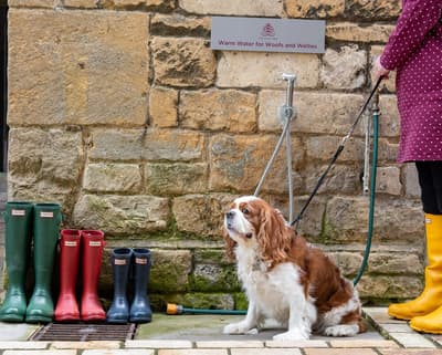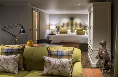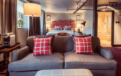 Bienvenue dans un hôtel historique, dont la façade de pierre s’inscrit dans le village typique de Broadway ! The Lygon Arms ne date pas d’hier : son origine remonte même au 14e siècle, période où il s’appelait The White Hart. Charles 1er s’y réunit avec ses sympathisants, Oliver Cromwell y séjourna avant la bataille de Worcester et, beaucoup plus récemment, le prince Philip le visita aussi. Vous pourrez donc choisir la chambre de l’ancien monarque et même repérer l’erreur sur les armoiries royales au-dessus d’une des cheminées. Exercice qui demande soit de vous intéresser un tant soit peu à l’histoire de l’Angleterre, soit de vous replonger rapidement dans vos manuels avant le départ. La déco a gardé son chic d’antan, poutres apparentes, plafonds bas, cheminées, boiseries, tissus tartan, lit à baldaquin, mais en beaucoup plus confortable qu’avant — du moins, on l’imagine ! Vous pourrez vous offrir une chambre ou une suite dans le bâtiment principal, ou obtenir un surclassement par rapport aux voyageurs d’antan en optant pour l’un des hébergements dans le cottage au toit de chaume. Pour dîner, rendez-vous dans le grand hall, datant du 16e siècle, où l’ambiance est beaucoup plus relax qu’autrefois, ou dans la jolie cour où trône un marronnier ! Autre amélioration depuis l’époque : le spa avec toit ouvrant !