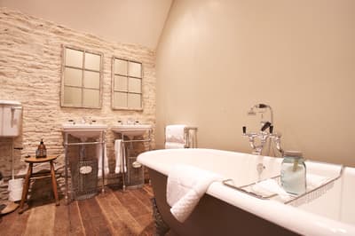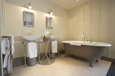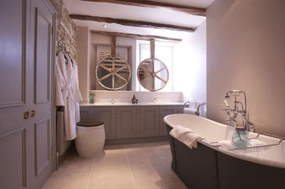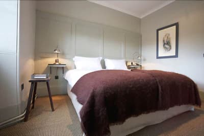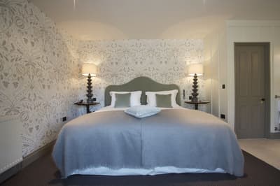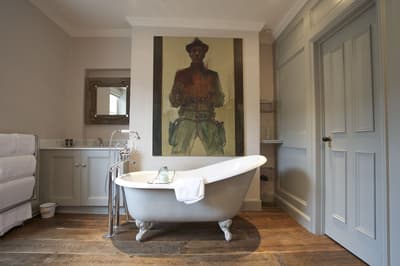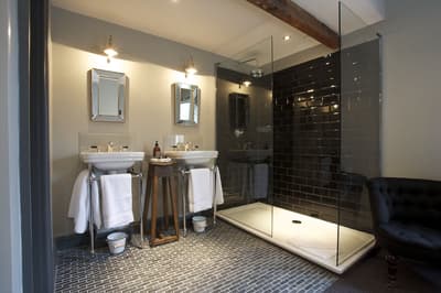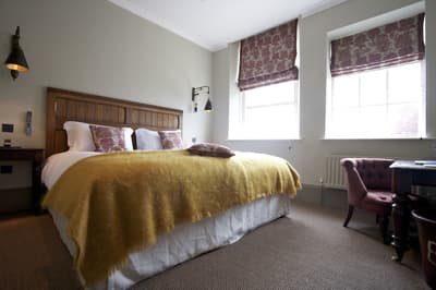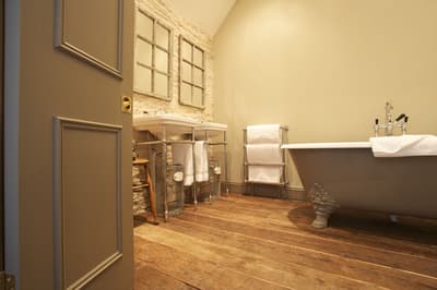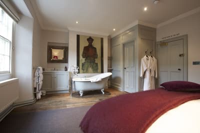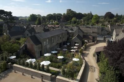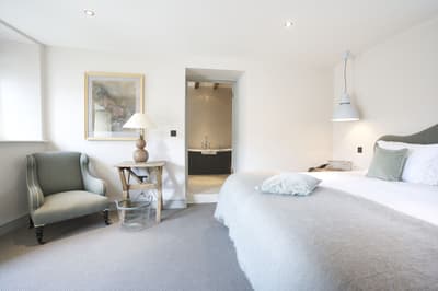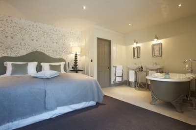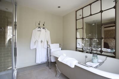 The Wheatsheaf Inn se situe au cœur du village authentique de Northleach, dans les Cotswolds, où on a l’impression de remonter le temps ! On imagine les voyageurs de l’époque s’arrêter dans cette auberge pour une nuit, au 17e siècle, avec leur cheval. La façade de pierre où grimpent les plantes, nues en hiver, verdoyantes en été, d’un rouge vif en automne, lui donne ce côté tantôt mystérieux, tantôt idyllique, tantôt romantique ! À l’intérieur, l’ambiance se métamorphose aussi au gré des saisons. Lors des journées froides et pluvieuses, on se blottit au coin du feu de cheminée, dans le pub, ou on prend un bain chaud dans sa chambre. Quand les beaux jours montrent le bout de leur nez, on profite de la terrasse, super jolie, et du jardin. C’est ici qu’on rêvasse à l’ombre des parasols blancs, qu’on hume le parfum des fleurs ou qu’on emprunte les marches en pierre qui mènent à des transats, sur la pelouse. Et les 14 hébergements, c’est « everything you expect it to be »… et plus ! Un mariage réussi entre cachet du passé — lit en bois avec miroir, poutres au plafond, parquet, baignoire cuivrée — et déco contemporaine — couleurs et tissus doux, esprit minimaliste, et tableaux très originaux. Le petit plus qui fait beaucoup : la salle de massage avec cheminée en pierre et bougies !