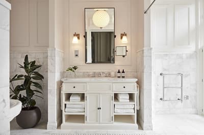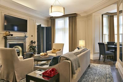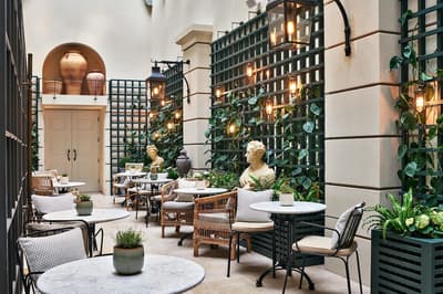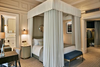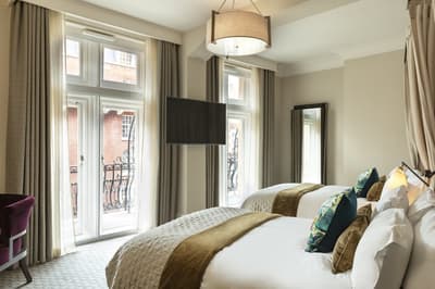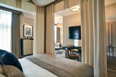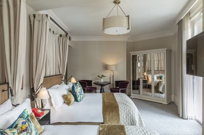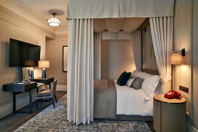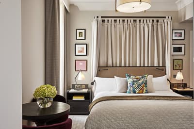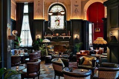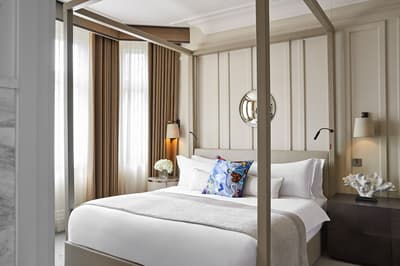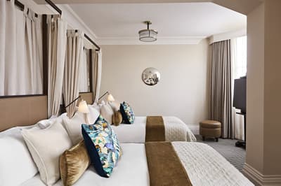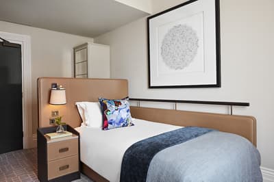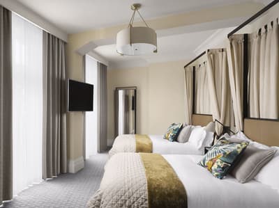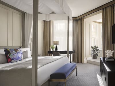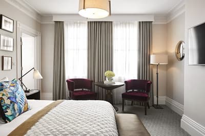 “Jack ! Jack !” : combien d’entre nous ont été hantés par ces paroles frigorifiées résonnant dans notre tête pendant des nuits remplies de chagrins ? Non, pas vous ? Fondé, créé, construit en 1900, le Kimpton Fitzroy London recrée quasiment à la perfection l’intérieur du Titanic qui a malheureusement sombré quelques années plus tard. Et ce, jusqu’au Lucky George, un certain dragon de bronze jonché à côté d’un escalier en marbre des Pyrénées. Rien que ça ! Vu de l’extérieur, le bâtiment est tout aussi impressionnant, avec une façade en terre cuite et quatre statues de reines d’Angleterre vous surveillant du coin de l’œil au-dessus de l’entrée. Et l’établissement est si important dans l’histoire du quartier de Bloomsbury (à deux pas du British Museum, entre autres) qu’il possède sa propre page Wikipédia, faut le faire ! Attention, cela ne veut pas dire qu’il est 100 % traditionnel. Au contraire, regardez donc son bar, sombre et chic à souhait, orné d’une boule disco brillant de mille feux, et sa terrasse intérieure lumineuse, parfaite pour bruncher. Les chambres font quant à elles la part belle à un design anglais comme dans les magazines. Elles sont munies de lits queen-size et les suites de lits king-size. Là, au moins, il y aura la place pour deux sans le moindre doute permis !