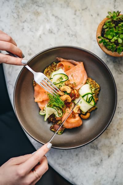 D’une simplicité exquise, c’est un petit cocon. Chic et élégante, elle est raffinée. La pièce baigne dans des tons neutres pour une ambiance sereine. Elle laisse pénétrer la lumière naturelle pour une pièce lumineuse et accueillante. Le mélange de bois, de verre et de métal rend la décoration élégante. Quelques touches de couleurs lui donnent du peps.