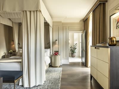 Faite pour accueillir toute une famille, c’est purement confortable. Cette belle chambre a tout ce qu’il faut pour un séjour superbe ! Le balcon profite d’une belle vue. Très spacieuse, elle accommode 2 lits doubles et dispose d’un coin salon aménagé de beaux fauteuils. Salle de bain avec douche à effet de pluie.