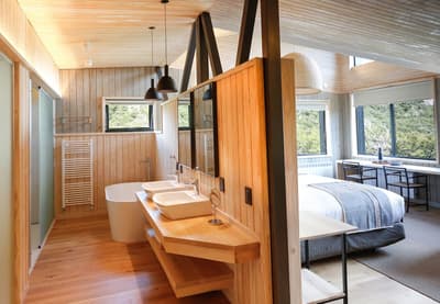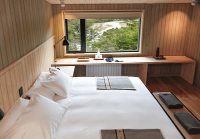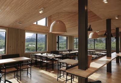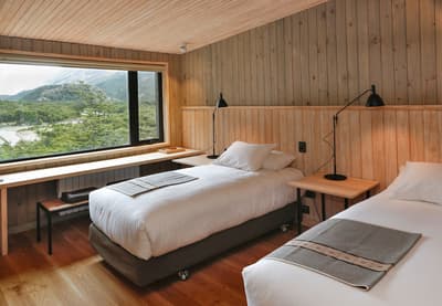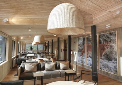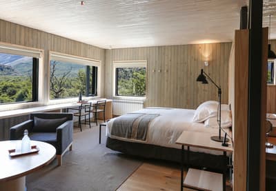 Comment l'Explora Chaltén réussit-il à vous faire sentir chez vous sur un territoire où les humains sont tellement secondaires ? Le lodge lui-même a tout juste osé poser quelques pilotis dans cette Réserve naturelle, sur lesquels campent 20 chambres et suites, autour d'espaces communs. Les lignes sont épurées et les couleurs naturelles, pour laisser le soin à dame Nature de se charger de la déco à travers toutes ces fenêtres panoramiques. Autour de vous, les sommets, la rivière Eléctrico et les forêts denses de lenga et de ñirre promettent des moments extatiques ! Même assis à la même table du petit-déj' au dîner, vous ne prendrez jamais la même photo ! Mais même si le spectacle est à l'extérieur, on adore le design des intérieurs. L'omniprésence du bois apporte une vraie chaleur et une belle harmonie à l'ensemble. Les luminaires en osier, ces grandes photos animalières et ces canapés super douillets où se lover, font le reste. Mais le top du top, c'est de faire trempette dans un des bains à remous qui donnent sur l'immensité de hêtres. Les massages seront votre lot quotidien - il y a pire dans la vie ! - car certaines randos laisseront votre corps endolori. Mais si on vous dit qu'à seulement 1,6 km du lodge, on trouve déjà deux sublimes lagons andins avec une vue sur le mont Fitz Roy, voilà qui va motiver vos muscles pour des marches plus longues, avec, comme carotte, le fameux champ de glace ! Vous aurez bien mérité votre restau, où la nourriture est excellente... Logique, puisque votre lodge récolte sur place, fait de la cueillette et se fournit en ingrédients locaux. C'est l'une des raisons de sa neutralité carbone !