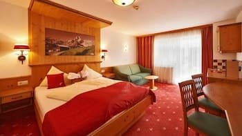 Au Bergzeit, le bio est beaucoup plus qu’un simple mot. Nature, traditions et pratiques écolo sont au cœur de l’établissement ! Côté environnement, cet hôtel familial est niché à plus de 1 000 mètres dans la vallée tyrolienne de Tannheimer Tal. Un paysage préservé de collines, prairies et forêts au pied du massif de l’Allgäu. Pour l’immersion, difficile de faire mieux ! Accueil chaleureux, matériaux locaux et produits régionaux vous accompagnent tout au long du séjour. La réception donne tout de suite le ton avec son staff en costume traditionnel et son comptoir en bois. Un confortable salon vous attend juste à côté. La palette de couleurs et de matériaux reflète l’utilisation des ressources durables de l’environnement alpin : essences de bois mais aussi lin et laine. Une esthétique douce et authentique que vous retrouvez au resto. Très agréable, celui-là, avec ses banquettes capitonnées, ses coussins douillets et ses éclairages tamisés en soirée. Et dans la journée, difficile de résister à la terrasse ensoleillée ! Topissime pour siroter un drink après une journée de ski, de vélo ou de randonnée. Le spa n’est pas immense mais les installations sont top niveau. Sauna finlandais ou infrarouge, bain de vapeur aux herbes des montagnes... Envie d’une déconnexion en apesanteur avec vue sur les sommets ? Essayez les transats suspendus dans la salle de relaxation panoramique ! Attention, vous aurez peut-être du mal à vous relever...